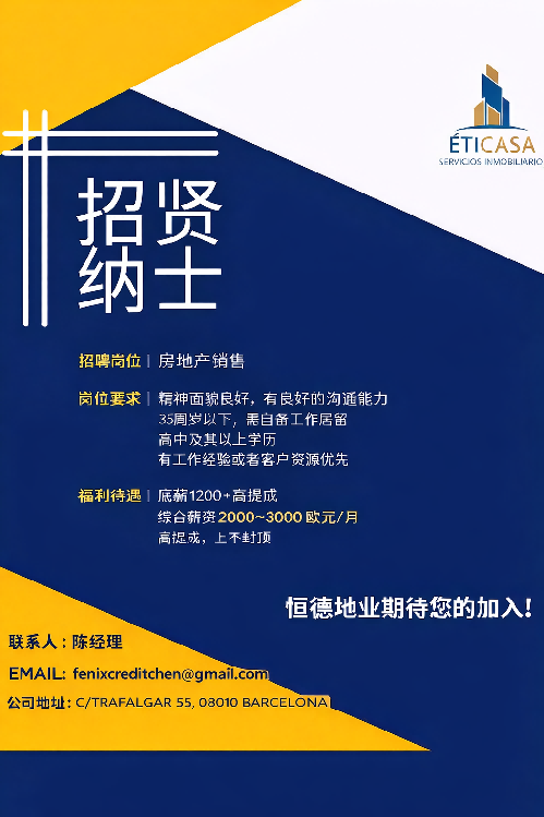 恒德地业巴塞罗那销售招聘(需自备工作居留) [本站推荐]
